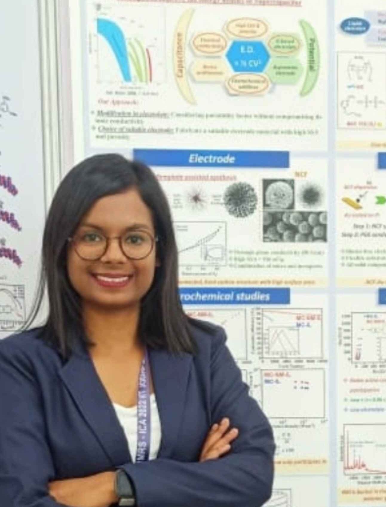 Dr. Poulomi Nandi is a postdoctoral researcher in the Department of Aerospace and Mechanical Engineering at the University of Arizona. Her research centers on advanced materials science and electrochemical systems, bridging fundamental mechanistic understanding with practical applications in energy storage technologies. Currently, her work encompasses three principal research directions, Mechanistic Electrochemical Etching of MAX Phases, MXene‑Based Microscale Energy Storage via 3D Printing, and Data‑Driven Electrolyte Discovery for Zinc‑Ion Batteries.